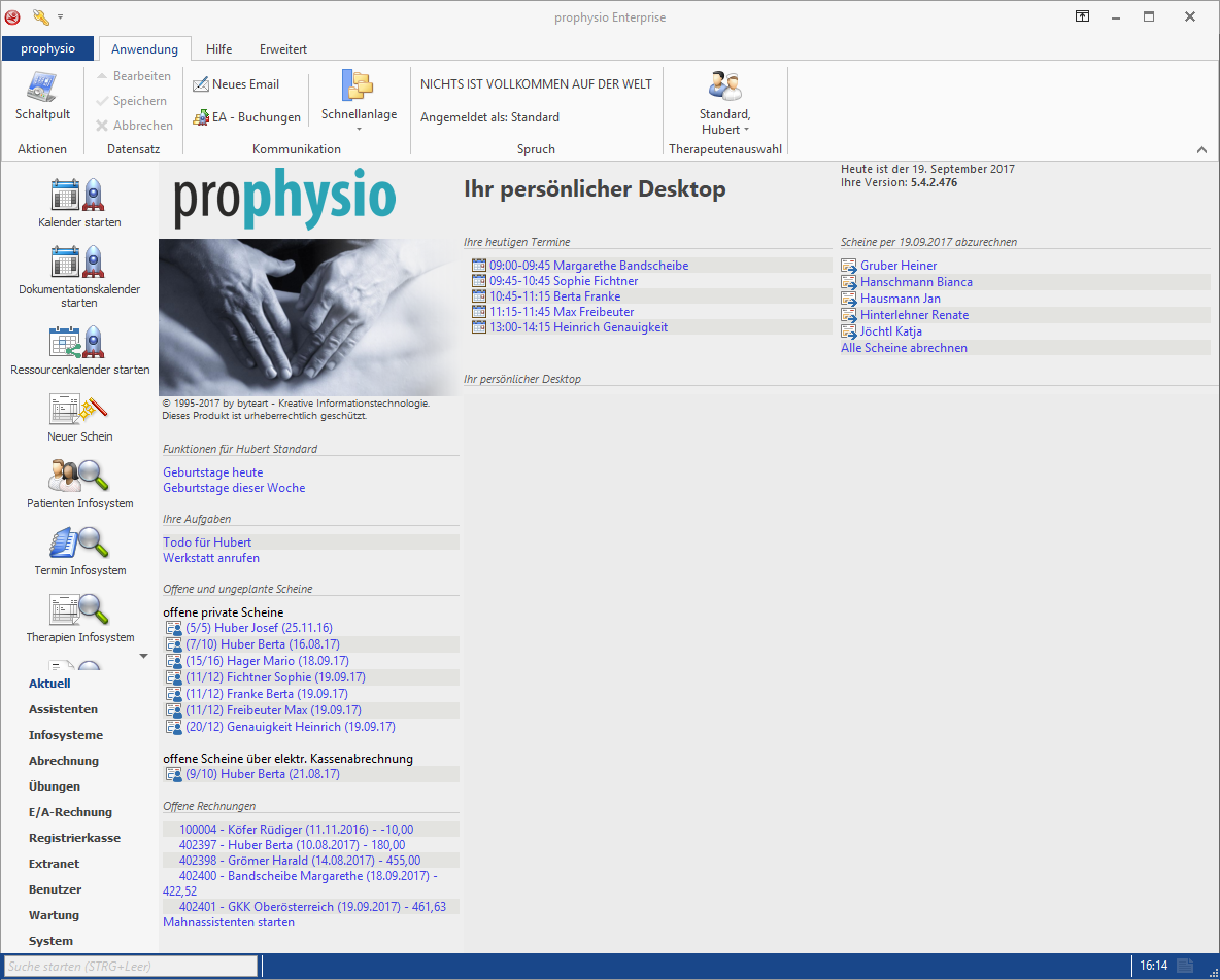 - Geburtstage heute bzw. diese Woche: auf Knopfdruck zeigt Ihnen prophysio alle Patienten, die heute oder diese Woche Geburtstag feiern