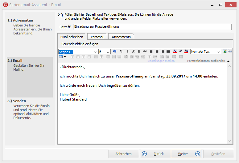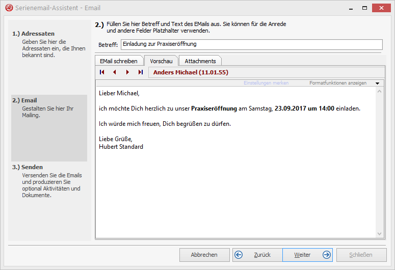 - Serienmails: versenden Sie an eine Patienten- oder Arztgruppe personalisierte Serienemails.