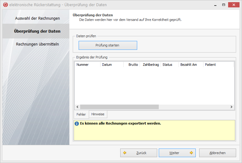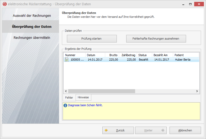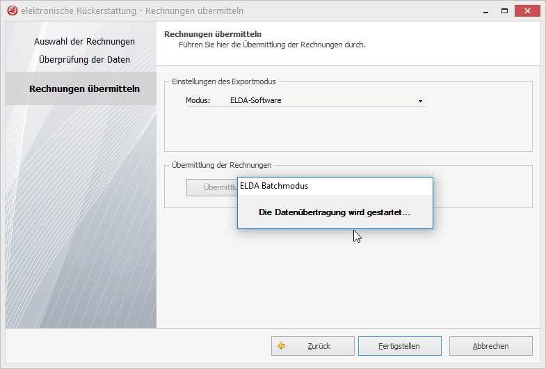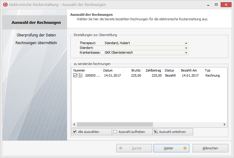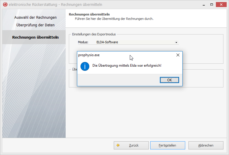 Im prophysio hilft Ihnen ein eigener Assistent die bezahlten Rechnungen, über die ELDA-Software automatisiert bzw. über ELDA-Online, an die Krankenkasse zu übermitteln.