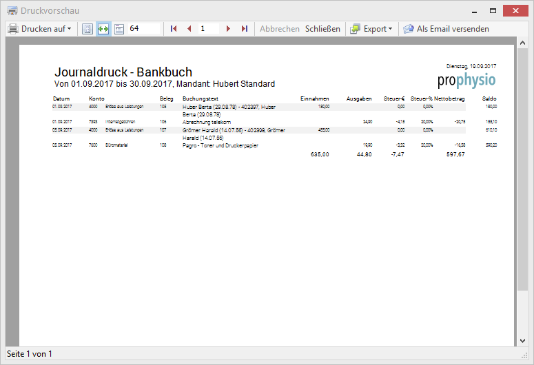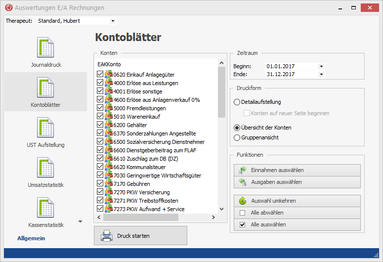Die Auswertungen verschaffen Ihnen einen schnellen Überblick über den aktuellen, finanziellen Stand Ihrer Praxis. Zusätzlich kann Ihr Steuerberater mit diesen Auswertungen schnell Ihren Jahresabschluss erstellen.