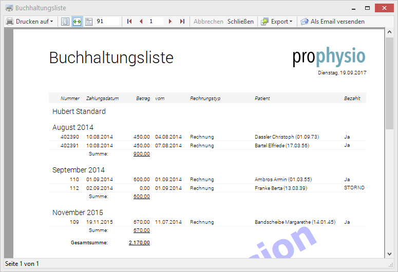 - Buchhaltungsliste: Übersicht über alle Rechnungen / Einnahmen die innerhalb eines Zeitraumes bezahlt wurden. Speziell für Einnahmen/Ausgaben - Rechner.
